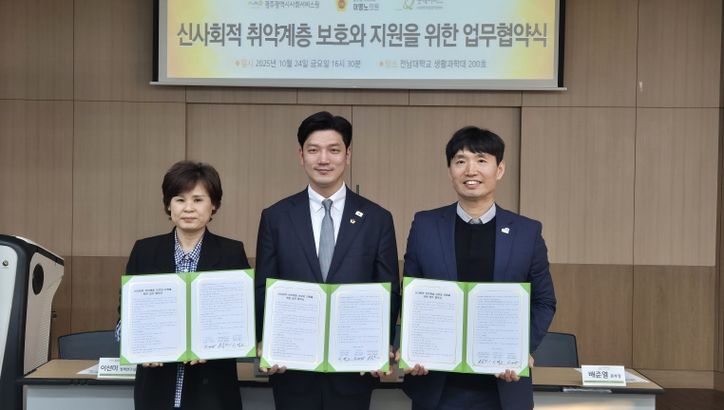 뉴한국방송뉴스통신사 김성의 기자 | 굿네이버스 광주지부(본부장 겸 사회적약자통합지원센터장 배준열)는 광주광역시의회 환경복지위원회 이명노(더불어민주당·서구3) 의원실, 광주광역시사회서비스원(원장 김대삼)과 함께 신사회적 취약계층 보호와 지원 강화를 위한 업무 협약식을 24일 진행했다고 밝혔다.
