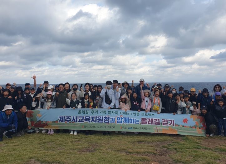 뉴한국방송뉴스통신사 신유철기자 기자 | 제주시교육지원청은 25일 제주시 용담동 어영공원에서 김만덕기념관까지 이어지는 올레길 17코스 일부 구간에서 학생과 보호자, 교육지원청 직원 등 100여 명이 참여한 ‘지원청과 함께하는 올레길 걷기’ 행사를 개최했다.