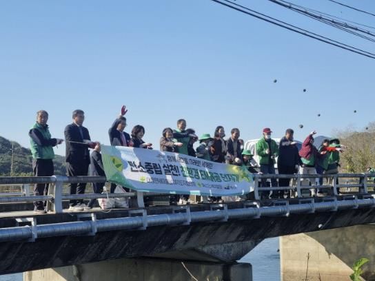 이번 행사는 새마을지도자협의회 회원 30여명이 자발적으로 참여해 진행됐으며, 지난 14일 대흥중학교 학생들과 직접 만든 EM 흙공을 약 2주간 발효한 뒤 이날 하천에 투입했다.