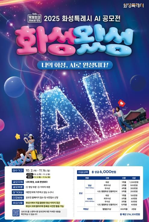 이러한 성과에 힘입어 올해 개최되는 '2025 화성특례시 AI 공모전–화성왔성'도 전국적인 참여가 더욱 높아질 것으로 기대된다.
