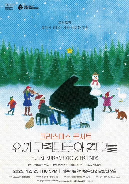 뉴한국방송뉴스통신사 신유철기자 기자 | (재)광주시문화재단은 오는 12월 25일 오후 5시, 광주시문화예술의전당 남한산성홀에서 ‘2025 크리스마스 콘서트 '유키 구라모토와 친구들'을 개최한다.