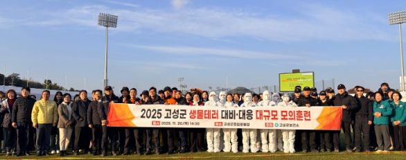 뉴한국방송뉴스통신사 신유철기자 기자 | 고성군은 군민의 생명과 안전을 지키기 위해 2025년 11월 20일 고성군종합운동장에서 ‘2025년 생물테러 대응 대규모 모의훈련’을 성공적으로 실시했다고 밝혔다.