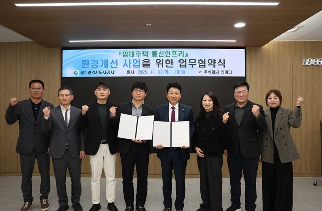 뉴한국방송뉴스통신사 김성의 기자 | 광주도시공사(사장 김승남)는 27일 빛고을고객센터에서 주식회사 케이티(광주지사장 김태오)과 함께 임대주택 통신인프라 환경개선을 위한 업무협약(MOU)을 체결했다.