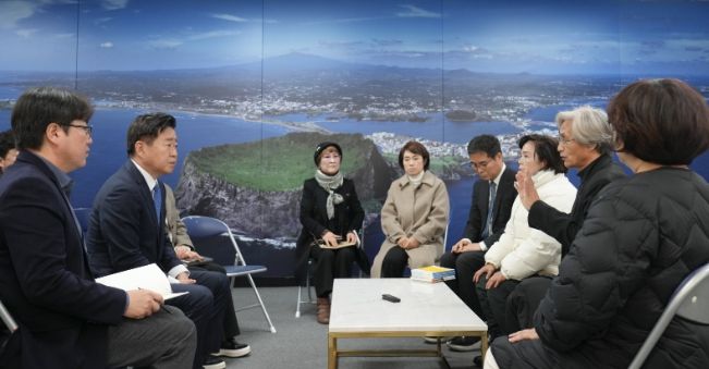 뉴한국방송뉴스통신사 신유철기자 기자 | 제주특별자치도는 제주평화인권헌장 제정과 관련해 2일(화) 도청 소통회의실에서 제주도민연대(대표 이향) 등 단체와 면담을 가졌다.