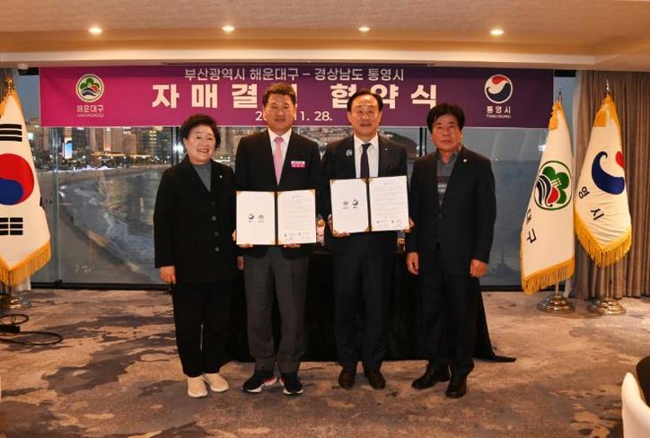 뉴한국방송뉴스통신사 신유철기자 기자 | 해운대구는 지난 11월 28일, 해운대구에서 경상남도 통영시와 자매도시 결연 협약을 체결했다.