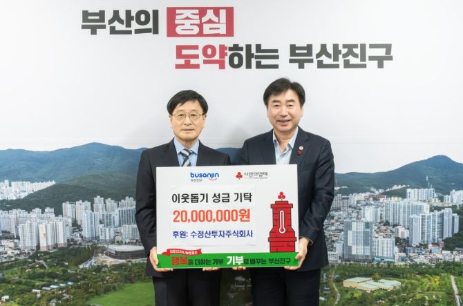 뉴한국방송뉴스통신사 신유철기자 기자 | 수정산투자(주)(대표이사 김호윤)는 12월 4일, 부산진구청을 방문하여 이웃돕기 성금 2,000만원을 전달했다.