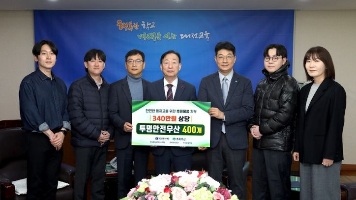 뉴한국방송뉴스통신사 신태공 기자 | 대전시교육청은 12월 8일 초록우산 대전지역본부로부터 340만원 상당의 투명안전우산 400개를 전달받았다고 밝혔다.