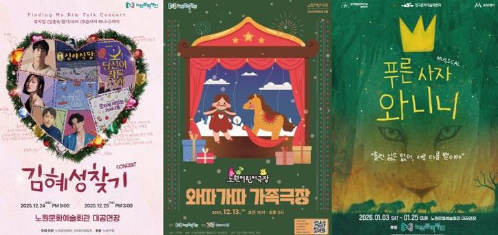 겨울 방학과 휴일에 맞추어 전 세대가 함께 즐길 수 있는 공연들을 마련해, 문화도시 노원의 연말 분위기를 한층 따뜻하게 채워갈 예정이다.