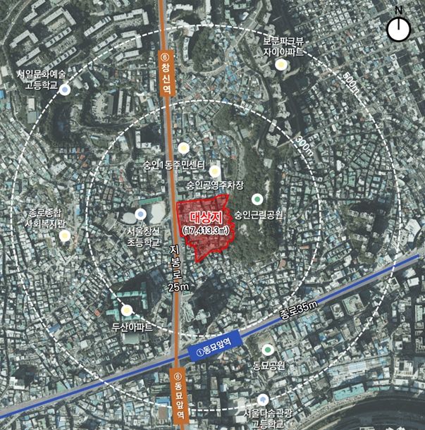 종로구 숭인동 61번지 일대(17,413.3㎡)는 모아타운 사업으로 기존 239세대에서 179세대 늘어난 총 418세대(임대 88세대 포함)를 공급할 예정이다. 대상지는 노후건축물 비율이 93.4%, 폭 4~6m 이하의 협소한 내부도로 등 열악한 여건으로 주거환경 개선이 필요했던 곳이다.