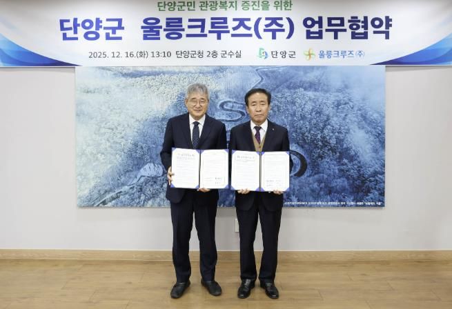 뉴한국방송뉴스통신사 권영분기자 기자 | 충북 단양군은 지난 16일 울릉크루즈(주)와 업무협약(MOU)을 체결하고, 군민을 대상으로 한 울릉도 여행 요금 할인 혜택을 추진한다고 밝혔다.