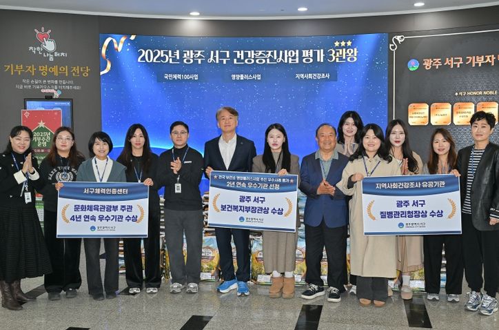 서구는 18일 2025년 국가 단위 주요 보건사업 성과평가에서 3개 분야에서 우수기관에 선정되며 3관왕의 영예를 안았다고 밝혔다. 특히 서구는 국민체력100 사업 평가에서 2022년부터 4년 연속 우수한 성적을 거두며 전국적인 모범 사례로 자리매김했다.