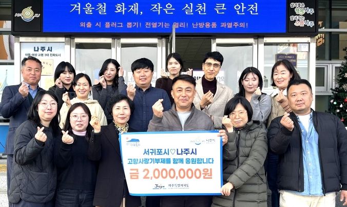 뉴한국방송뉴스통신사 신다은기자 기자 | 전라남도 나주시는 지난 17일 나주시 세무과와 제주특별자치도 서귀포시 세무과 직원들이 고향사랑기부금 상호 교차 기부에 동참했다고 밝혔다.
