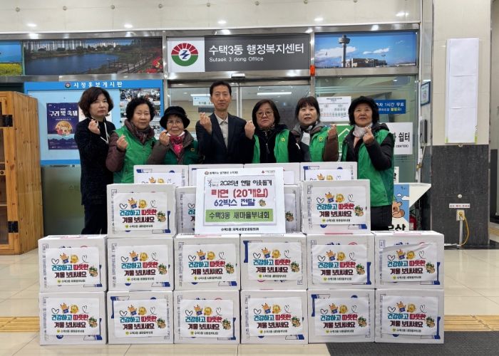 홍종민 수택3동장은 “수택3동 새마을부녀회의 꾸준한 나눔 덕분에 이번 겨울이 한층 더 따뜻해졌다”라며 “매년 연말마다 지역사회와 주민들을 위해 봉사해 주시는 새마을부녀회 회원 여러분께 깊은 감사의 말씀을 드린다”라고 전했다.
