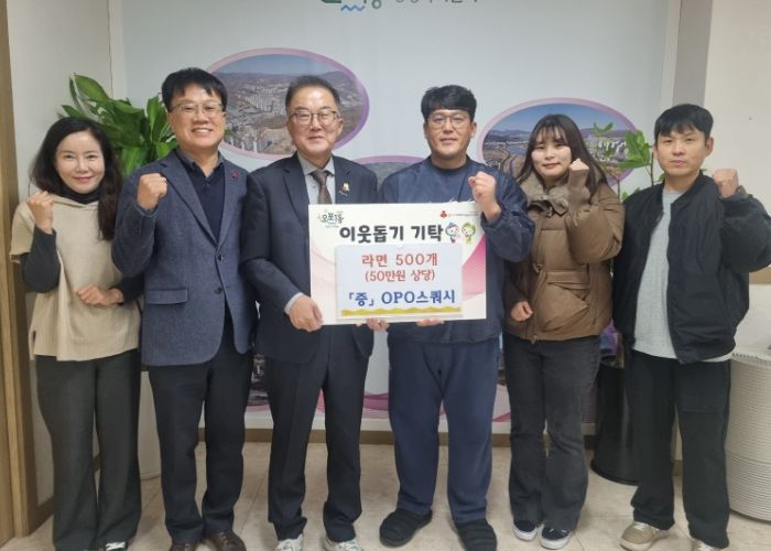 뉴한국방송뉴스통신사 신유철기자 기자 | OPO스쿼시 강인석 대표는 23일 어려운 이웃에게 전달해 달라며 광주시 오포1동에 라면 500개(50만 원 상당)를 기탁했다.