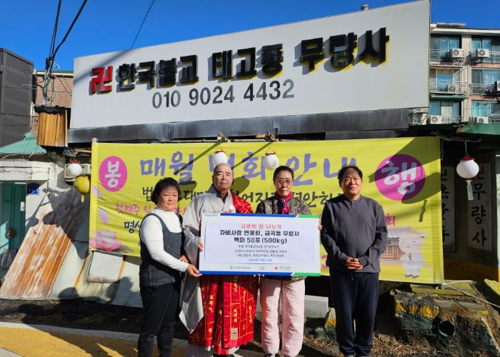한편, 자비사랑연꽃회는 한국불교태고종 소속 사찰 스님들과 불자들이 뜻을 모아 결성한 단체로, 2009년부터 지역사회의 소외된 이웃을 위해 꾸준한 백미 후원을 이어오며 자비 나눔을 실천하고 있다.