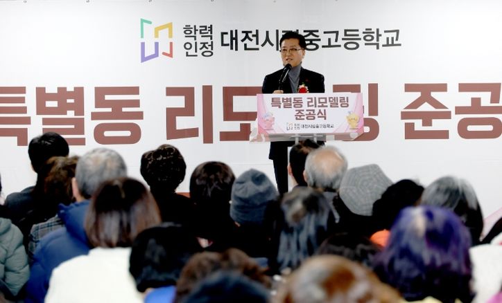 이날 준공식은 26억 원의 예산을 투입해 3층 규모의 교육 공간을 마련하는 것으로 지역을 대표하는 단체·기관장, 대전시립중고등학교 동문 및 학생 등 250여 명이 참석한 가운데 시설 라운딩을 시작으로 주요내빈 축사, 사업 경과보고, 영상 시청, 테이프커팅 및 기념촬영 순으로 진행됐다.