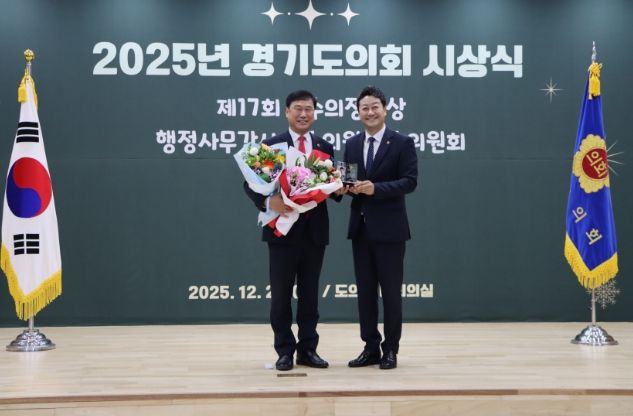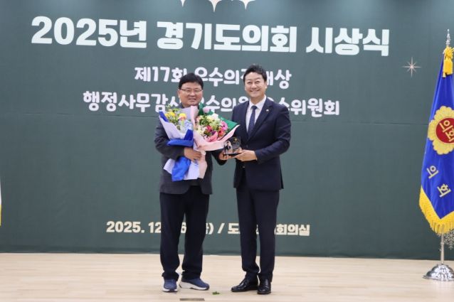 뉴한국방송뉴스통신사 신유철기자 기자 | 경기도의회 교육기획위원회 이택수 의원(국민의힘, 고양8)과 성기황 의원(더불어민주당, 군포2)이 26일 열린 2025년 경기도의회 시상식에서 ‘2025년 행정사무감사 우수위원’으로 선정됐다.