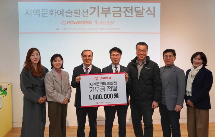 광주문화재단 배동환 사무처장은 “파워텍의 따뜻한 후원에 깊이 감사드린다”며 “기부금은 광주 문화예술이 더 많은 시민의 일상에 스며들 수 있도록 투명하게 사용하겠다. 앞으로도 지역 기업과의 동반 성장을 통해 지속 가능한 문화 생태계를 만들어가겠다”고 전했다.