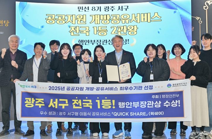 뉴한국방송뉴스통신사 김성의 기자 | 광주광역시 서구의 생활밀착형 공유정책 ‘천원 피크닉’이 전국 무대에서 주목받았다. 서구는 행정안전부가 주관한 ‘2025년 공공자원 개방·공유서비스 실적평가’에서 전국 최우수 기관으로 선정돼 행정안전부 장관상을 수상했다고 29일 밝혔다.