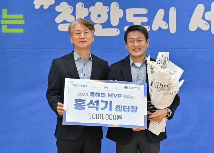 뉴한국방송뉴스통신사 김성의 기자 | 광주광역시 서구는 ‘2025 올해의 MVP 공무원’으로 홍석기 서구소상공인경영지원센터장을 선정했다고 31일 밝혔다. 서구는 올해 분기별 MVP 공무원 7명을 대상으로 주민·공직자 설문조사와 MVP 선발위원회 평가 점수를 합산해 최종 수상자를 결정했다.