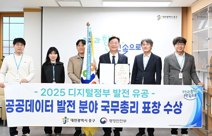 뉴한국방송뉴스통신사 신태공 기자 | 대전 중구는‘2025 디지털정부 발전 유공 정부포상’공공데이터 발전 부문에서 전국 기초자치단체 중 유일하게 국무총리 기관 표창을 수상했다고 4일 밝혔다.