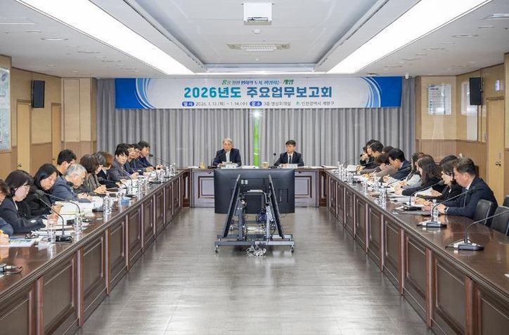 뉴한국방송뉴스통신사 신유철기자 기자 | 인천광역시 계양구는 1월 13일부터 14일까지 이틀간 구청 영상회의실에서 전 부서가 참여하는 ‘2026년도 주요업무보고회’를 개최했다.