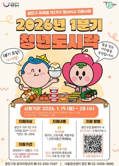 뉴한국방송뉴스통신사 신유철기자 기자 | 광진구(구청장 김경호)가 미취업 청년 1인가구의 간편한 식생활을 지원하기 위해 2026년 ‘청년도시락’ 지원 사업을 본격 추진한다.