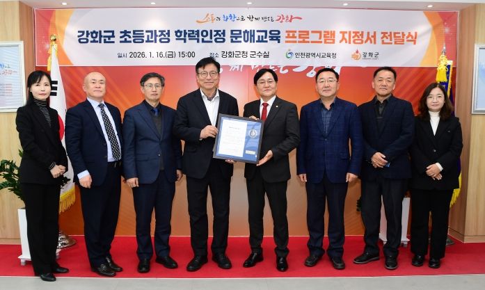 강화군은 16일 인천광역시교육청과 문해교육 프로그램 운영기관 지정서 전달식을 개최하고, ‘강화 행복학교’ 운영의 본격적인 시작을 알렸다.