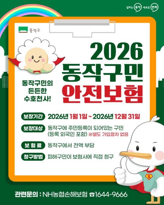 뉴한국방송뉴스통신사 신유철기자 기자 | 동작구는 2026년부터 ‘구민안전보험’을 확대 운영한다고 19일 밝혔다.