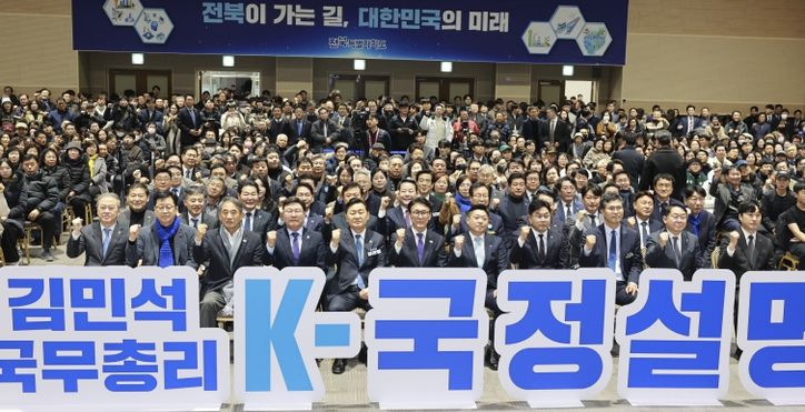 뉴한국방송뉴스통신사 신유철기자 기자 | 김민석 국무총리가 19일 전북대학교 JBNU컨벤션센터에서 열린 ‘K-국정설명회’에 참석해 전북을 ‘미래산업의 테스트베드’로 육성하겠다는 정부의 의지를 재확인했다. 국민주권정부 출범 6개월을 맞아 전국을 순회하며 진행되는 이번 행사에는 도민 500여 명이 참석해 정부와 직접 소통하는 시간을 가졌다.