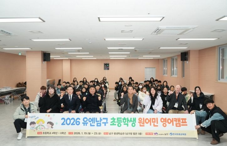 뉴한국방송뉴스통신사 신유철기자 기자 | 부산 남구는 지난 1월 19일부터 23일까지 5일간 남구청 별관 평생학습관에서 '2026년 유엔남구 초등학생 원어민 영어캠프'를 운영한다고 밝혔다.