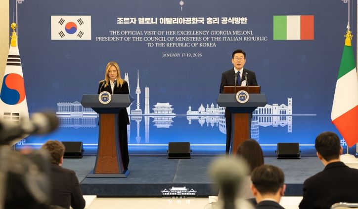 또한 이 대통령은 "세계 평화 안정에 기여하기 위해 긴밀한 협력을 이어갈 것"이라며 "한-이탈리아는 국제무대 가치를 공유하며 글로벌 도전에 공동 대응하는 우방국으로, 한반도 긴장 완화를 넘어 세계적 평화 가치를 함께 수호해 나갈 것"이라고 밝혔다.