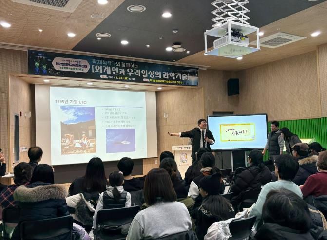 이날 강연자로 나선 곽재식 작가는 공학 박사이자 소설가로, 과학을 대중의 눈높이에 맞춰 쉽고 친근하게 전달해 온 과학 커뮤니케이터다. 곽 작가는 ‘외계인과 우리 일상의 과학기술’을 주제로, 다소 생소할 수 있는 과학 이론을 일상 속 사례와 연결해 설명하며 청중의 흥미를 이끌었다.