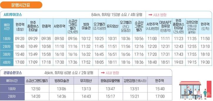 이를 위해 주요 관광지와 전통시장을 잇는 관광 순환 코스를 편성하고, 탑승 시간 및 회차별 시간 간격을 줄였다. 또한 만종역과 서원주역 승강장을 추가해 대중교통을 이용하는 관광객의 접근성을 강화했다. 관광객 요청이 많았던 빙하미술관 승강장도 새로 포함됐다.