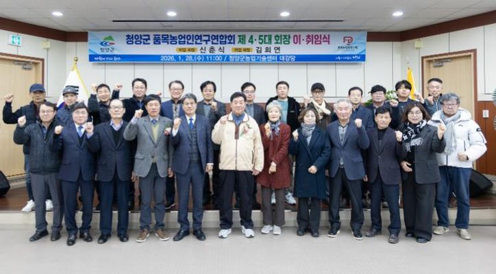 뉴한국방송뉴스통신사 신태공 기자 | 청양군은 지난 28일 농업기술센터에서 품목농업인연구연합회 회원 및 내빈 등 100여 명이 참석한 가운데 연합회장 이·취임식을 개최했다고 밝혔다.
