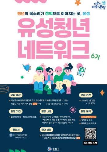 참여를 희망하는 청년은 2월 2일부터 20일까지 신청서를 이메일로 제출하면 되며, 자세한 사항은 유성구청 일자리정책과로 문의하면 된다.