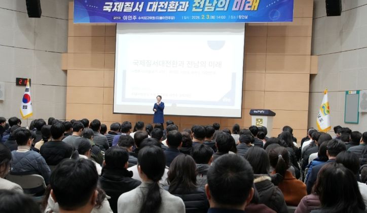 뉴한국방송뉴스통신사 신다은기자 기자 | 전라남도는 3일 도청 왕인실에서 이언주 더불어민주당 수석최고위원(미래경제성장전략위원회 위원장·AI강국위원회 수석부위원장)을 초청해 ‘국제질서 대전환과 전남의 미래’를 주제로 제301회 전남포럼을 개최했다.