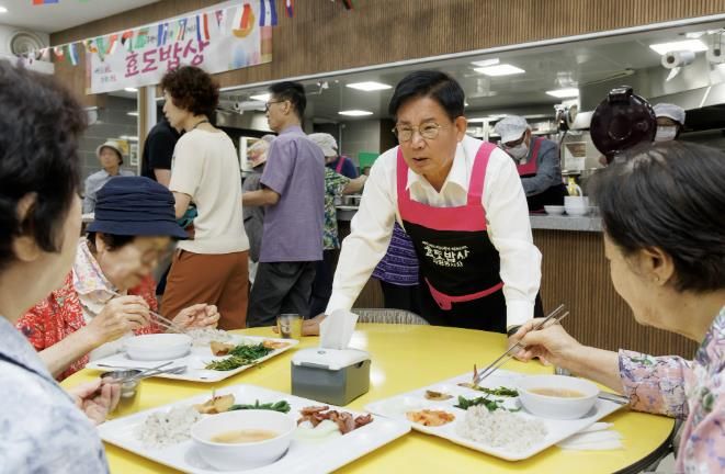 ‘주민참여 효도밥상’은 75세 이상 어르신을 대상으로 양질의 점심 식사는 물론 건강 관리, 법률·세무 상담까지 연계한 원스톱 어르신 복지 서비스로 새로운 돌봄 모델로 자리매김하고 있다.