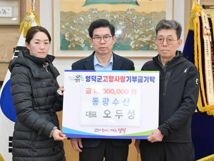 뉴한국방송뉴스통신사 신유철기자 기자 | 영덕군에서 오징어 원물 가공을 주력으로 운영하는 동광수산의 오두성 대표가 지역사회 발전에 이바지하기 위해 지난 2일 김광열 영덕군수를 만나 고향사랑기부금 1,000만 원을 전달했다.