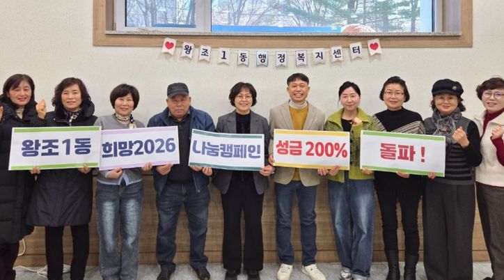 신혜정 왕조1동장은 “많은 주민과 단체에서 한마음으로 나눔에 동참해 주신 덕분에 목표의 200%를 달성할 수 있었다”며 “앞으로도 촘촘한 복지 실현을 위해 나눔 문화 확산에 최선을 다하겠다”고 밝혔다.