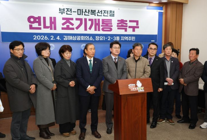 뉴한국방송뉴스통신사 신유철기자 기자 | 김해시 상공계와 시민들은 4일 오전 11시 김해시청 브리핑룸에서 부전-마산복선전철의 연내 조기 개통을 강력 촉구했다.