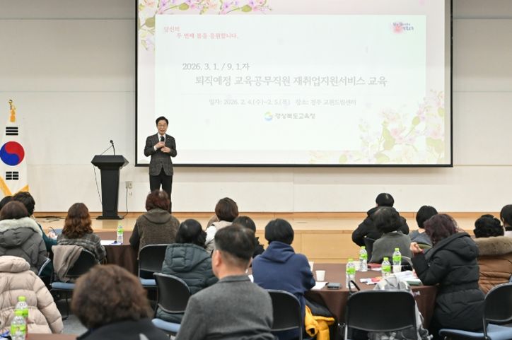 뉴한국방송뉴스통신사 신유철기자 기자 | 경북교육청은 4일부터 5일까지 1박 2일간 경주 교원드림센터에서 2026년 3월 1일과 9월 1일 퇴직 예정인 교육공무직원 213명을 대상으로 재취업지원서비스 진로설계교육을 실시했다고 밝혔다.