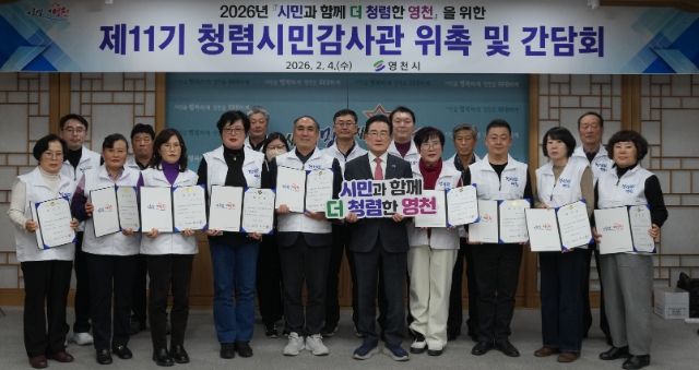 뉴한국방송뉴스통신사 신유철기자 기자 | 영천시는 4일 시청 영상회의실에서 ‘제11기 청렴시민감사관 위촉 및 청렴영천 간담회’를 개최하고, 청렴한 시정 구현을 위한 다양한 의견을 수렴했다.