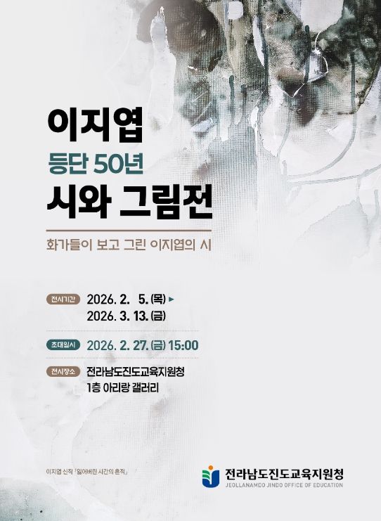 뉴한국방송뉴스통신사 김성의 기자 | 전라남도진도교육지원청은 2월 5일부터 3월 13일까지 아리랑 갤러리에서 이지엽 시인 등단 50년을 기념하는 『시와 그림展』을 개최한다.
