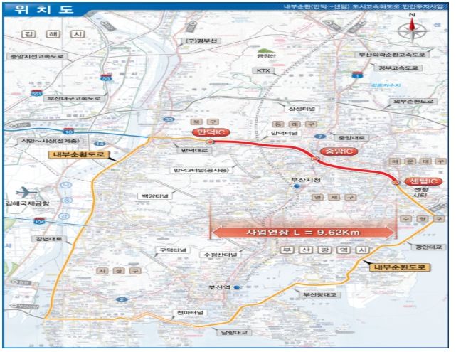 만덕–센텀 혼잡도로 개선사업은 부산 동서축 주요 간선도로인 만덕대로와 충렬대로의 상습적인 교통정체를 해소하기 위해 총사업비 7,860억 원(국비 898억 원 포함)이 투입된 정부의 국고보조 혼잡도로 개선사업이다. 기존 도로 하부에 총연장 9.62㎞, 왕복 4차로 규모의 전 차종이 이용 가능한 대심도 지하도로를 건설하는 사업이다.