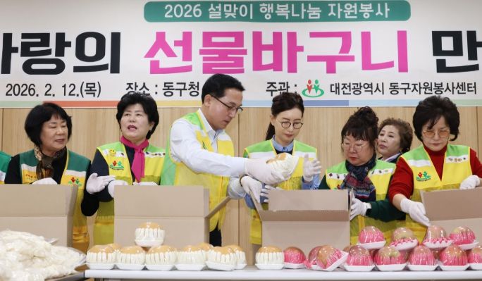 뉴한국방송뉴스통신사 신태공 기자 | 대전 동구는 12일 동구청 후생관에서 동구자원봉사센터 주관으로 설 명절 맞이 ‘사랑의 선물바구니’ 제작 행사를 개최했다고 밝혔다.