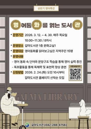 뉴한국방송뉴스통신사 신태공 기자 | 대전 서구 갈마도서관은 아이부터 어른까지 함께하는 영어 독해 강좌를 운영한다.
