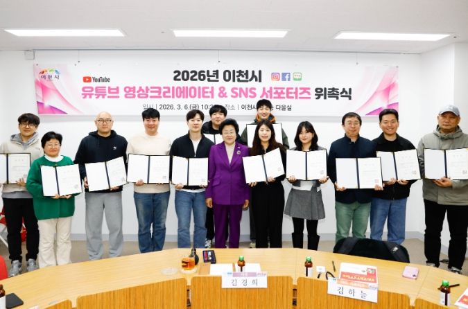 뉴한국방송뉴스통신사 신유철기자 기자 | 이천시는 ‘2026년 이천시 시민 유튜브 영상크리에이터 및 SNS 서포터즈’ 위촉식을 갖고 본격적인 활동을 시작했다고 6일 밝혔다.