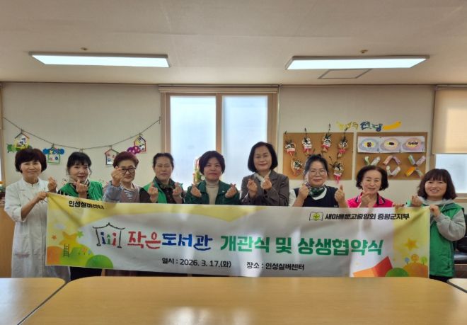 뉴한국방송뉴스통신사 권영분기자 기자 | 새마을문고중앙회 증평군지부(회장 강미영)가 17일 인성실버센터에서 ‘새마을문고 작은도서관’개관식과 상생 협약식을 개최했다.