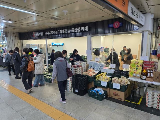 이번 매장은 충주시와 서울교통공사가 도농 상생과 농산물 직거래 확대를 위해 추진한 협력사업으로, 수도권 시민들에게 충주 농산물을 가까이에서 소개하기 위해 마련됐다.